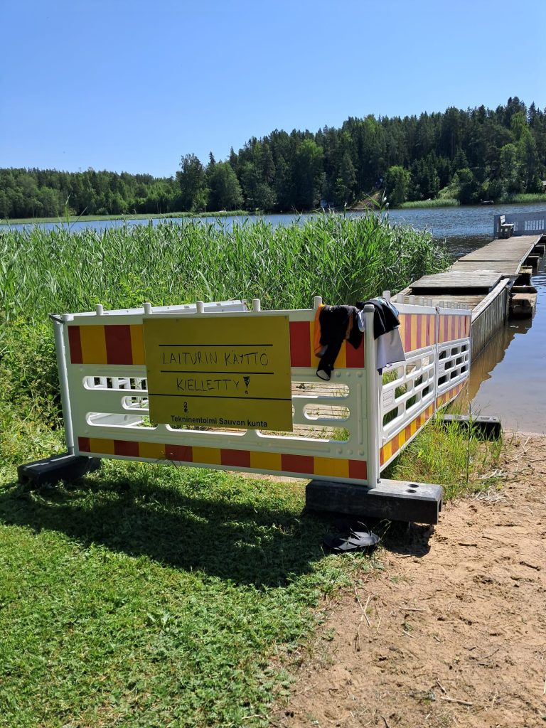 Nyt rantaan on merkitty pienillä poijuilla varustettu varoköysi, minkä oikealla puolella voi uida. Varoköyden on tarkoitus pysyä paikoillaan, kunnes uusi laituri asennetaan. Uuden laiturin asennustyö on tällä hetkellä kilpailutuksessa.